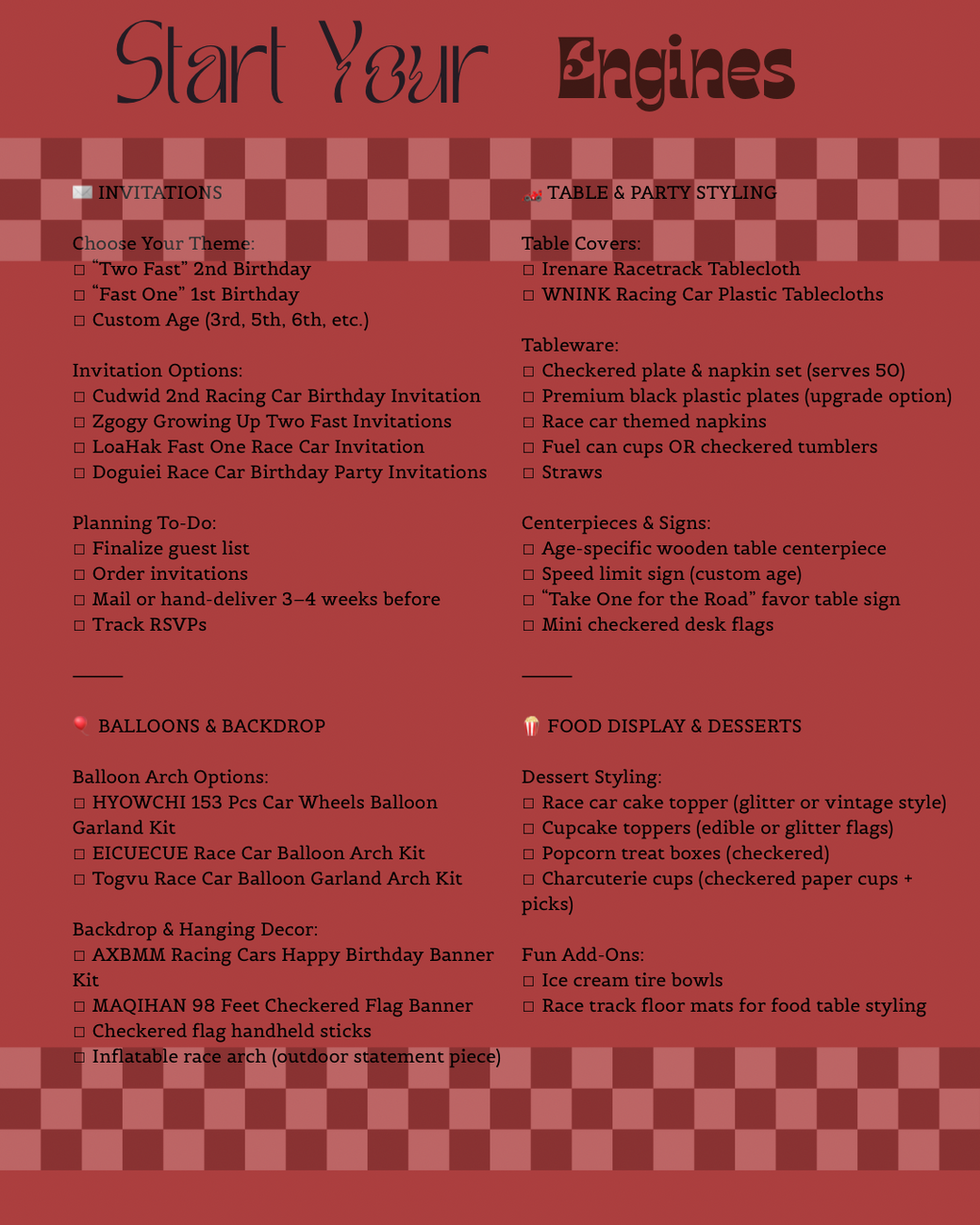 These FREE check lists outline everything needed for a memorable celebration, designed with flexibility and budgeting in mind.